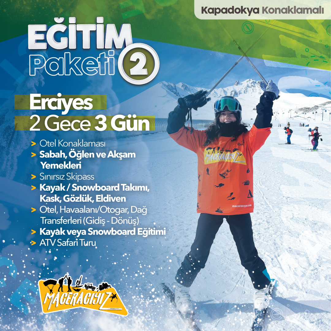 Eğitimlerimiz gruplar halinde planlanmaktadır. Kayak eğitimi alacaklar için ayrı grup, snowboard eğitimi alacaklar için ayrı bir grup planlaması yapılmaktadır. Eğitim süresi 2 saattir. Bu eğitim sonrasında öğrendiğiniz bilgileri tekrarlamanız için pratik uygulaması için 2-3 saat serbest zamanda olacaksınız. Bu süreçte ve kayak tatilinizin son gününe kadar maceracıyız lider ekibi pistlerde her an yanınızda olacaktır. Lider ekibimizin de desteği ile artık kendi başınıza kayıyor olacak seviyeye gelmiş olacaksınız.